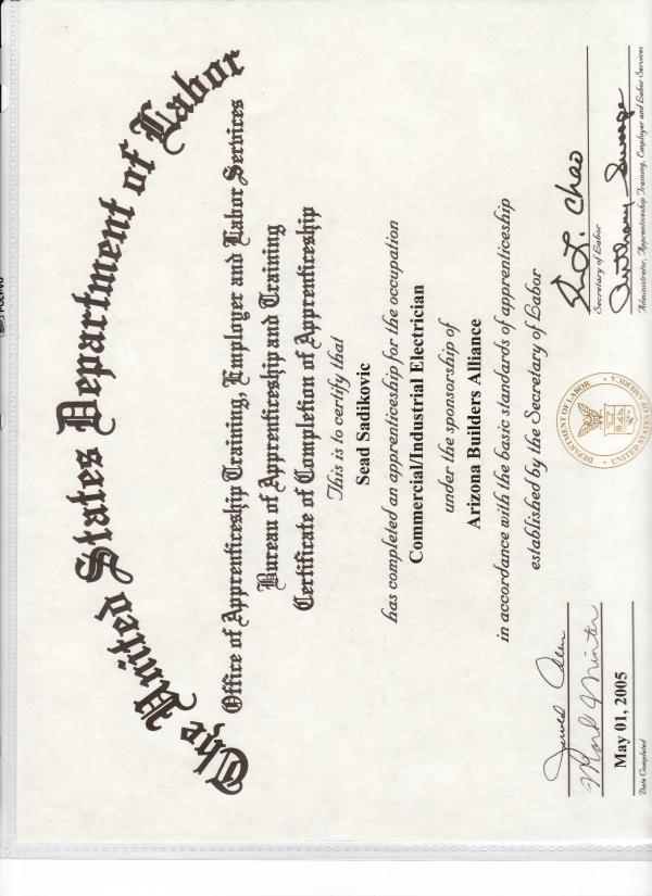 If in future you require the services of an electrician, please do not hesitate to call us at 602-930-2883 and ask for Sead.